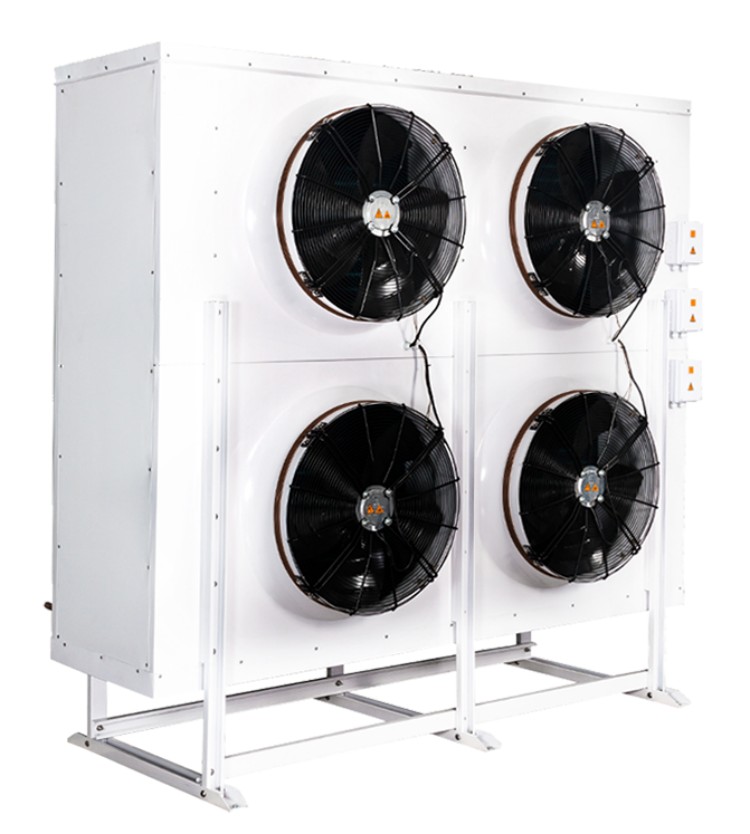 冷库用冷风机是一种适用各种冷库的热交换设备,需与相应的制冷压缩机组配套使用。冷风机的热交换部分为铜管外套铝翅片结构、使铜管与翅片紧密贴合,减小了接触阻热、提高了热导率、使换热效果达到最大化。冷风机使用一段时间后,在翅片表面会形成霜,用户应根据具体库内情况确认化霜需求、挑选合适的型号及除霜方式的冷风机。