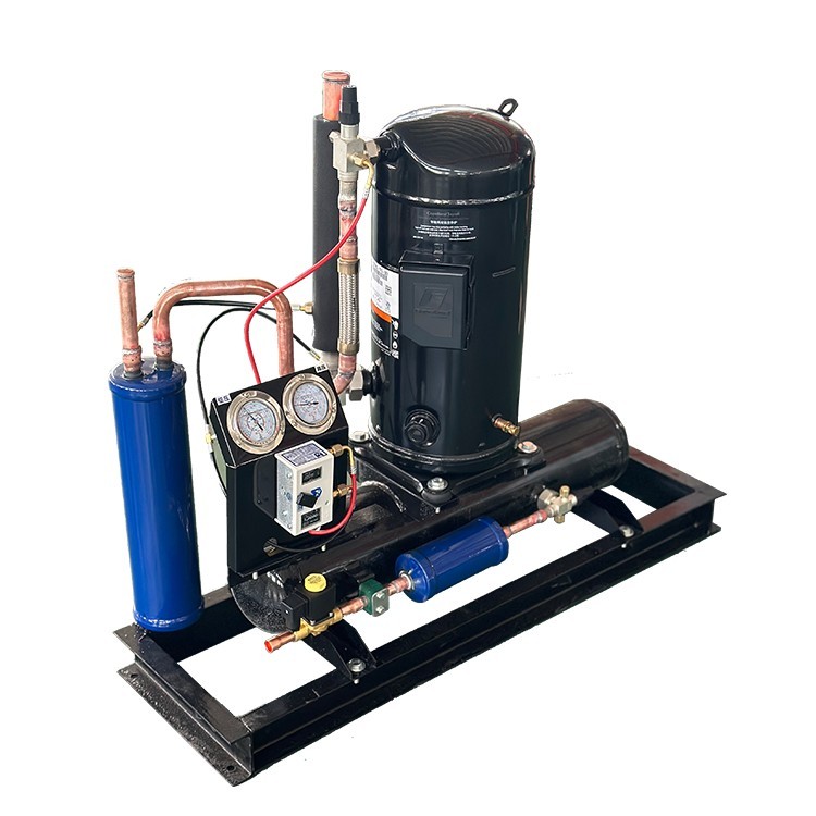 压缩机;吸气过滤器;油分;压控;压力表;储液瓶;油加热棒;气分;电磁阀;